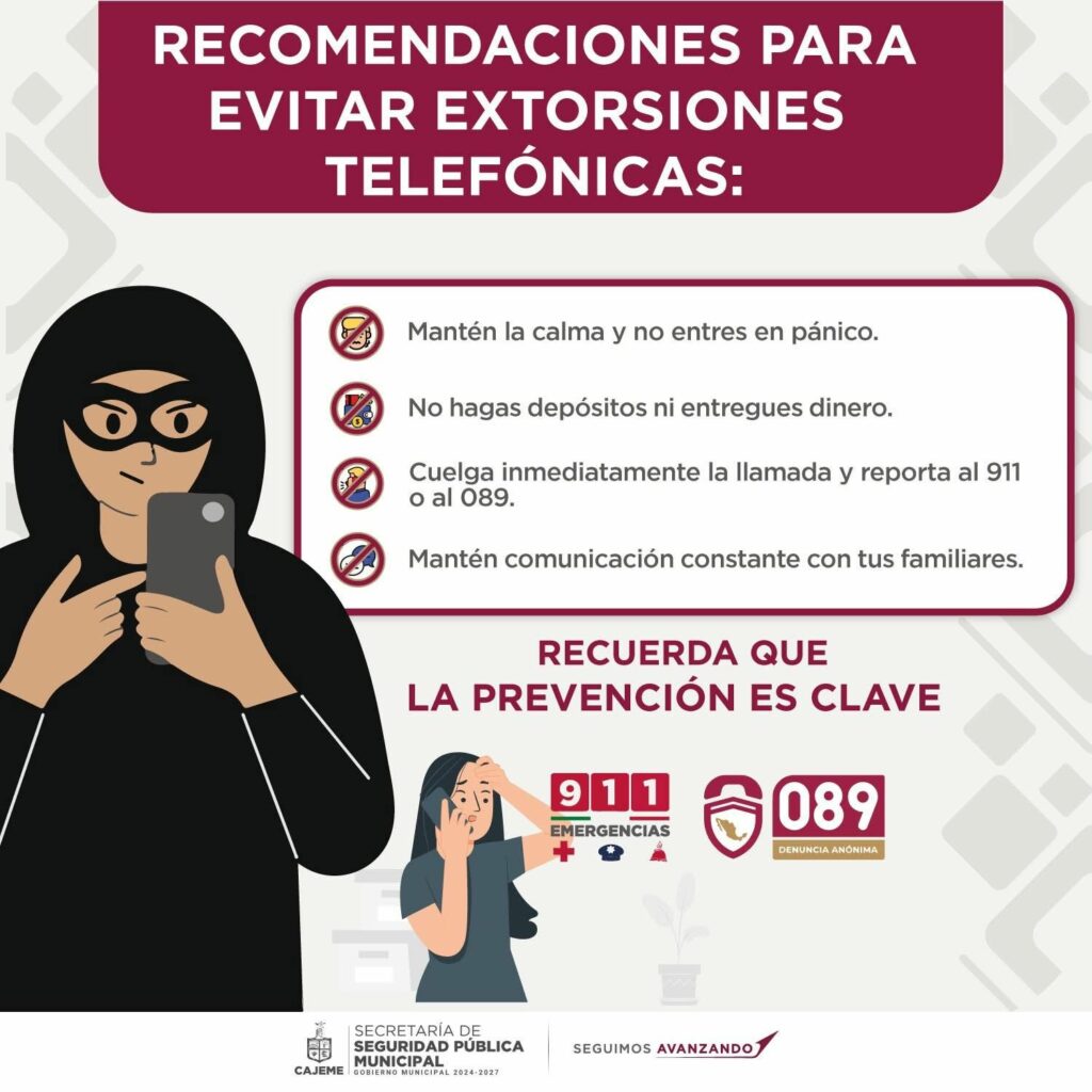 Las autoridades recordaron que, ante cualquier intento de extorsión, la ciudadanía puede comunicarse de inmediato al 911 o realizar su denuncia de manera anónima al 089, líneas que se encuentran disponibles las 24 horas del día.