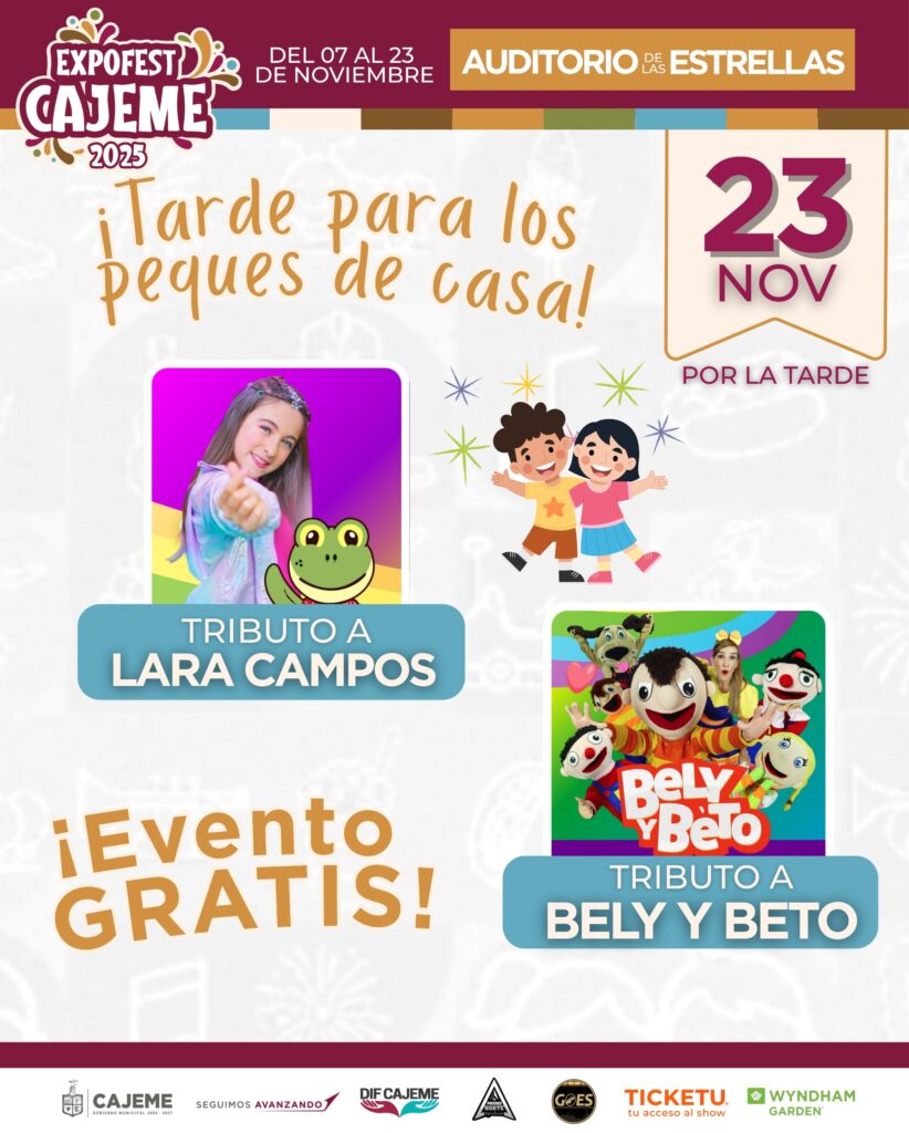 Una semana después, el sábado 23 de noviembre, la diversión continuará con el Tributo a Lara Campos, la pequeña estrella de las redes, y un cierre espectacular con el Tributo a Bely y Beto, donde los asistentes podrán cantar y bailar junto a sus personajes preferidos en una experiencia completamente familiar.
