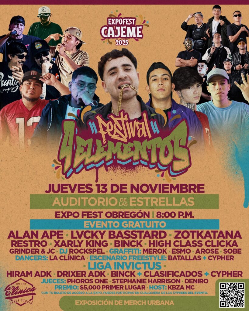 El Festival 4 Elementos promete ser mucho más que un espectáculo: será una celebración del respeto, la creatividad y la unión entre generaciones. Una noche para disfrutar, apoyar el talento cajemense y vivir de cerca la evolución del hip hop sonorense.