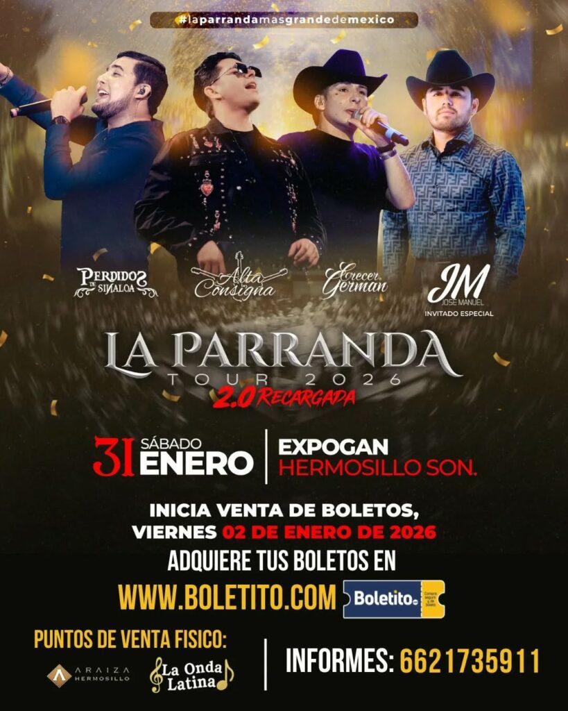 Este sábado 31 de enero, Sonora será escenario de uno de los espectáculos más esperados del regional mexicano con la llegada de La Parranda Tour 2.0 Recargada, un proyecto musical que reúne a destacados exponentes del género y que tendrá como sede el Palenque Sonora, en Hermosillo.