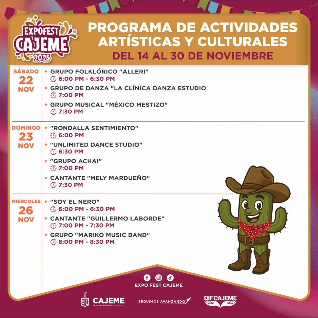 La variedad de actividades convierte a la ExpoFest Cajeme en un punto de encuentro cultural y social, donde familias, jóvenes y visitantes pueden vivir experiencias únicas. Además de los conciertos, la feria incluye espacios dedicados a emprendedores locales, exhibiciones comunitarias y zonas diseñadas para el entretenimiento seguro de los más pequeños.