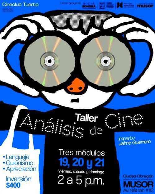 Cineclub Tuerto, conocido por impulsar actividades formativas y funciones de cine independiente, busca con este taller acercar al público obregonense a herramientas profesionales de análisis, promoviendo una apreciación más profunda del séptimo arte. La metodología está pensada para que tanto principiantes como aficionados avanzados puedan aprovecharla.