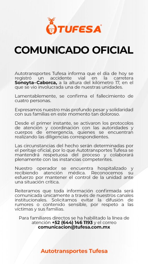 Tras difundirse la noticia, las redes sociales reaccionaron de inmediato. Decenas de usuarios manifestaron su dolor, enojo y frustración, señalando que en ocasiones se genera desinformación inicial sin conocer con precisión cómo ocurrieron los hechos, por su parte, la empresa TUFESA lanzó el siguiente comunicado: