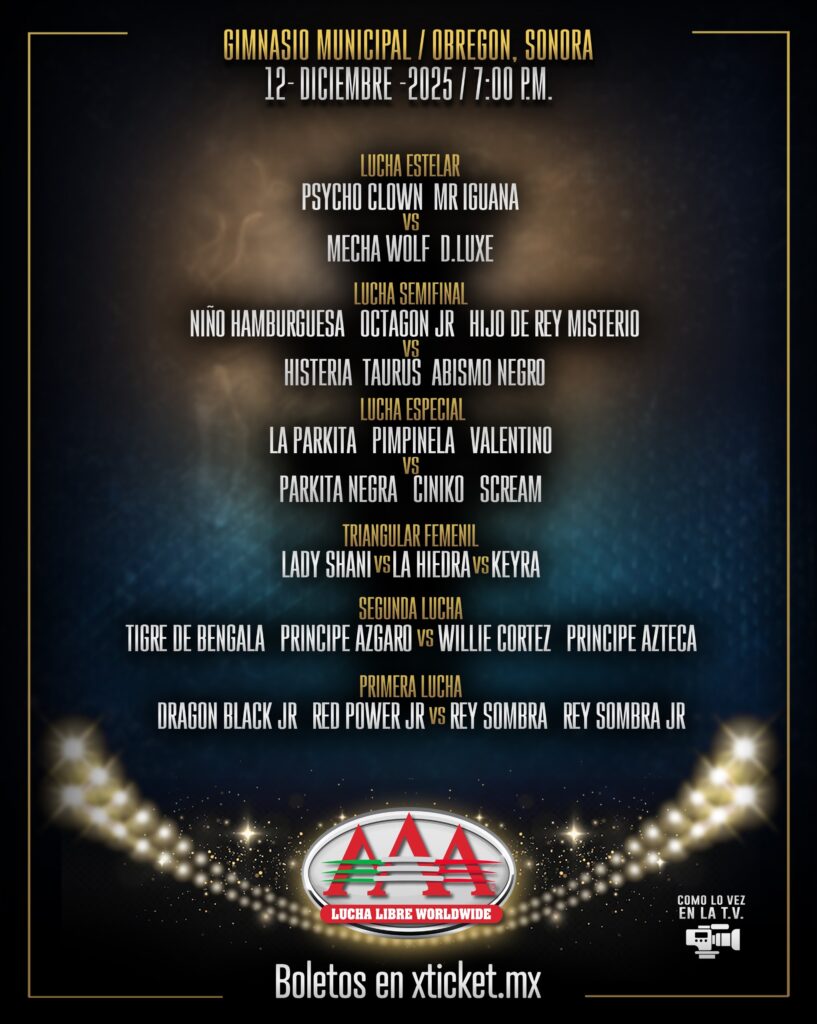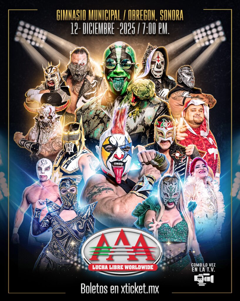 Así que ya lo sabes, Ciudad Obregón se prepara para una noche épica de lucha libre este 12 de diciembre. Asegura tus boletos y vive de cerca el poder, la destreza y la emoción de Triple A, un espectáculo que promete quedar grabado en la memoria de todos los aficionados.
